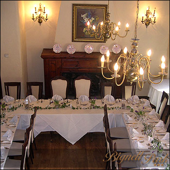 ............................................. Weddings at the hotel The majority of our weddings take place in the restaurant, with its unique shape, large fire place and Minstrel Gallery currently has a maximum of 60 guests.